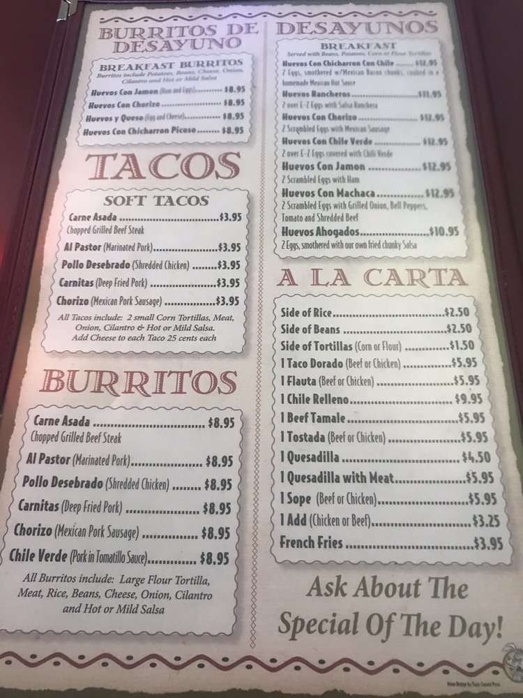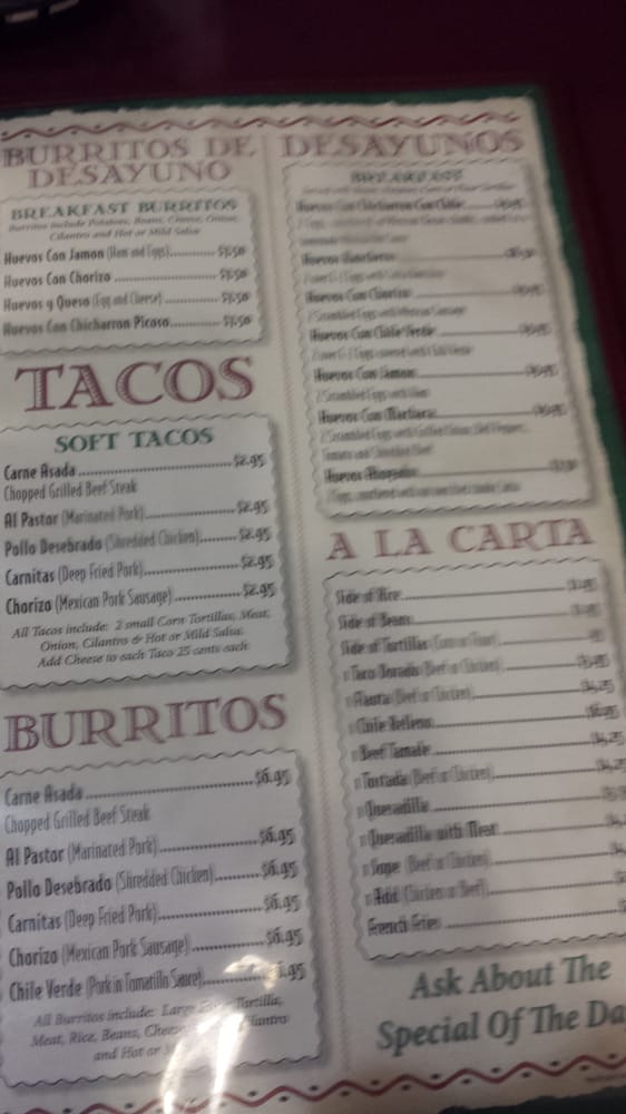Taqueria Tepatitlan Menu